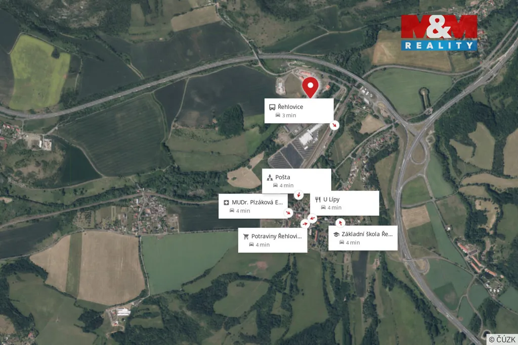V sousedních Řehlovicích (4 min autem) najdete vše potřebné – potraviny, poštu, lékaře, restauraci i základní školu. Autobusová zastávka je dostupná za 3 minuty jízdy. Parkování před areálem nebo v areálu.