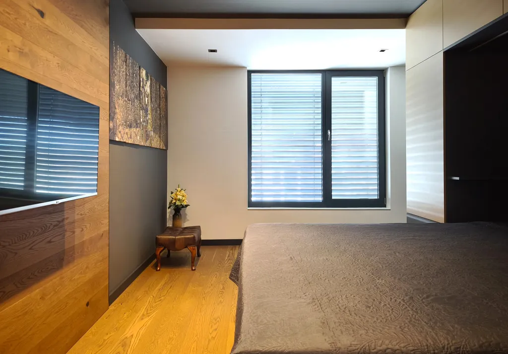 Hliníková okna s izolačními trojskly zajišťují dostatek přirozeného světla a tepelnou izolaci. Pro maximální komfort jsou zde elektricky ovládané předokenní žaluzie a dvě klimatizační jednotky pro chlazení i ohřev. Příjemný pocit v prostoru zajišťují dřevěné obklady a podlahové vytápění, V bytě je dostatek úložných prostor.