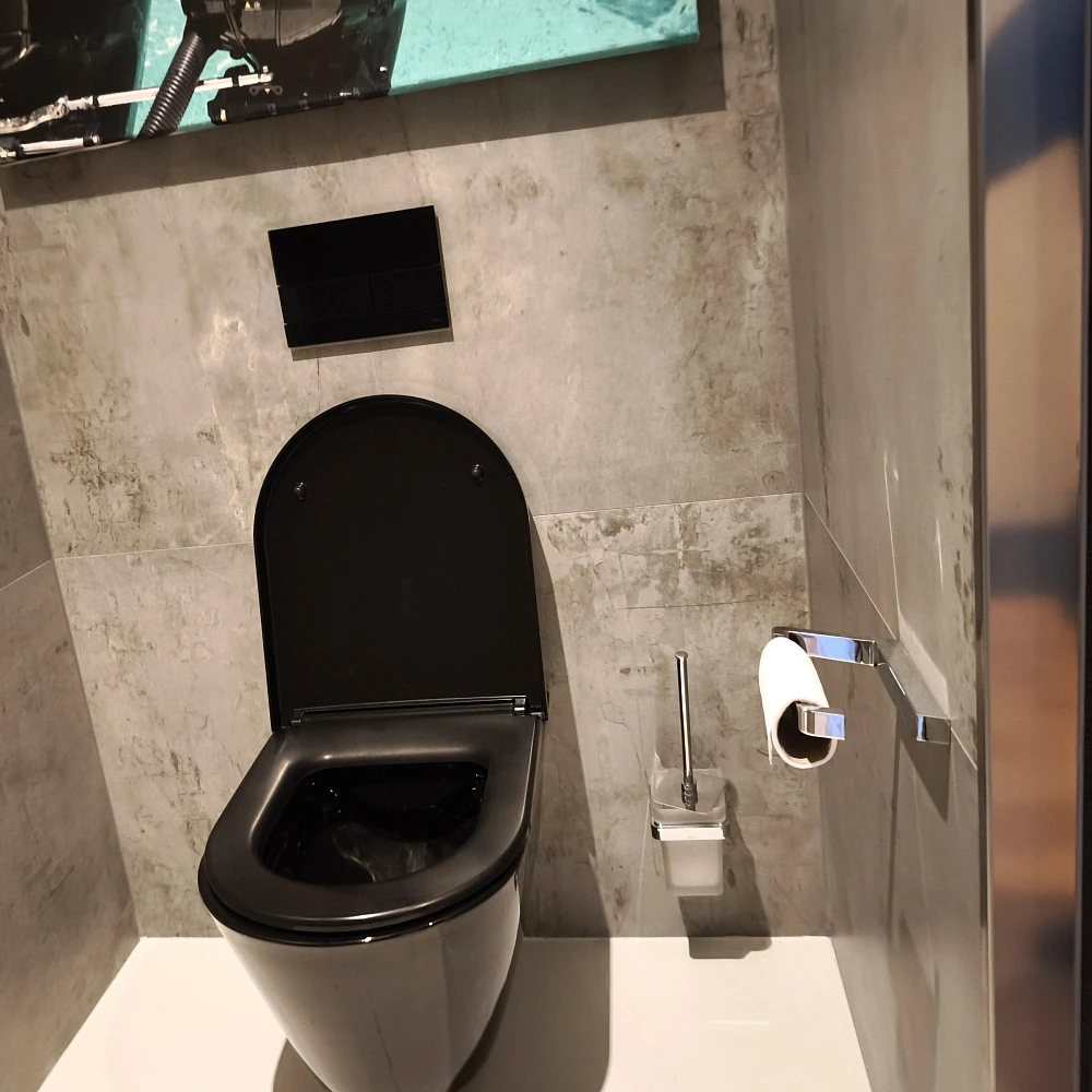 Kvalitní dřevěná dubová podlaha a velkoformátové obklady dodávají bytu moderní a luxusní vzhled. Posuvné dveře v pokojích a designové doplňky sanity v koupelně a na WC to jen umocňují.