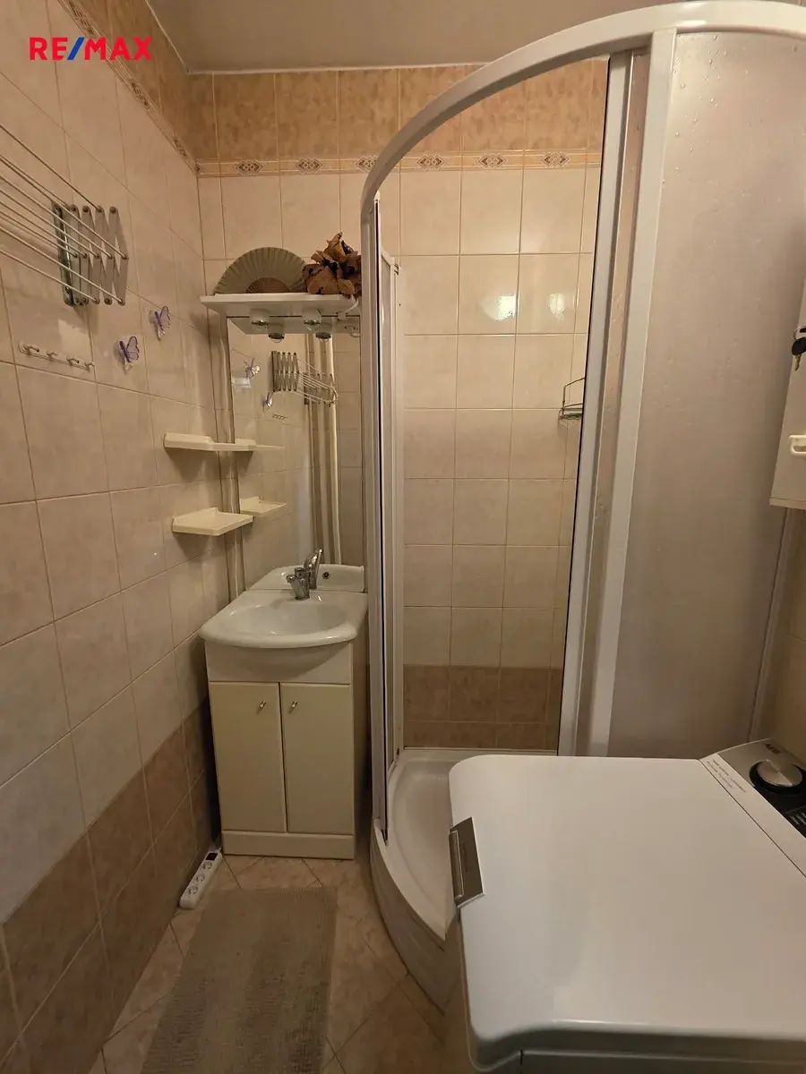 • koupelna: sprchový kout, umyvadlo, zrcadlo, skříňky, pračka