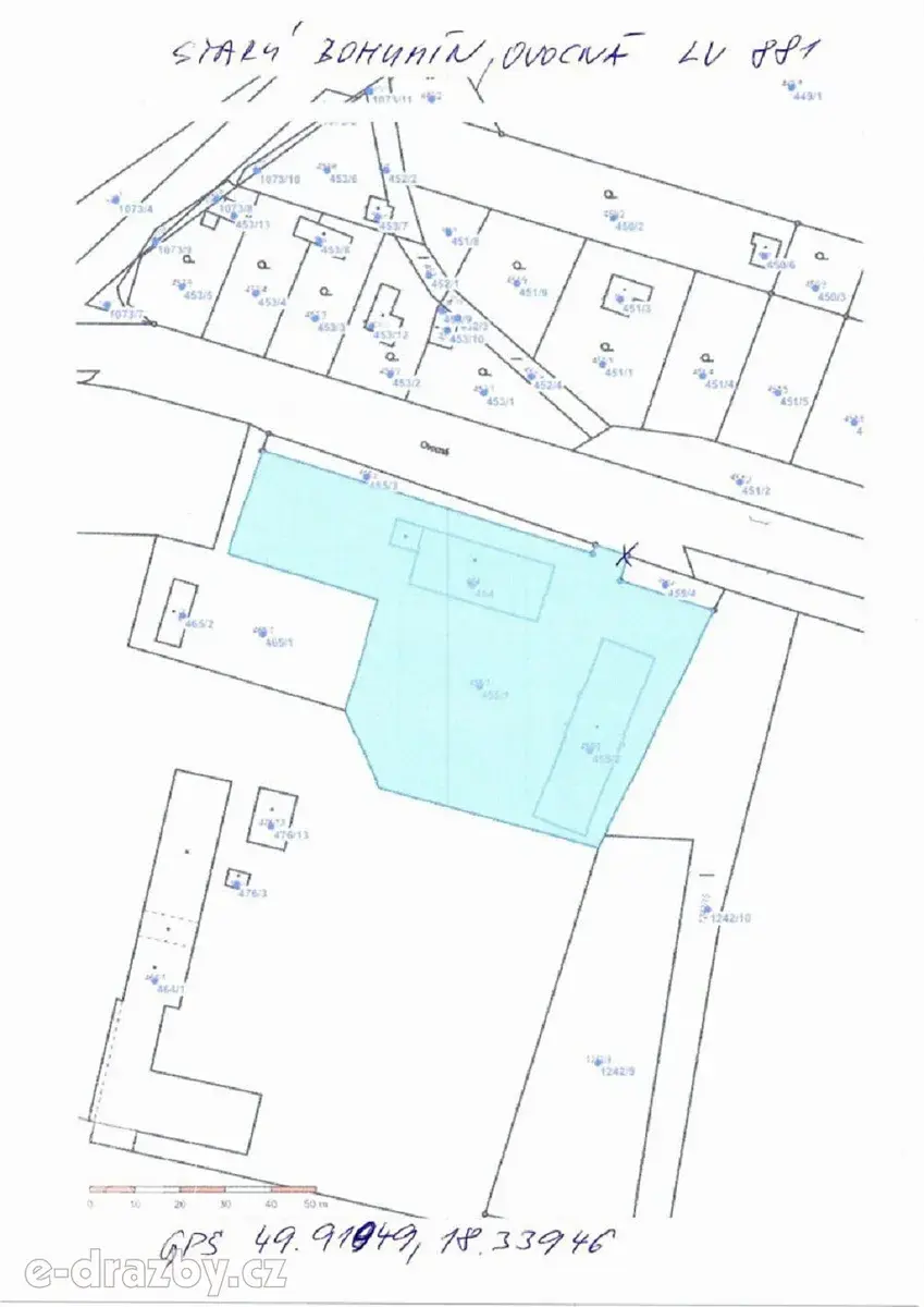 Předmětem dražby jsou nemovité věci, které se nachází v ulici Ovocná, a to parcela č. 454, o výměře 422 m2, zastavěná plocha a nádvoří, parcela č. 455/1, o výměře 3920 m2, ostatní plocha, manipulační plocha, a parcela č. 455/2, o výměře 512 m2, zastavěná plocha a nádvoří.