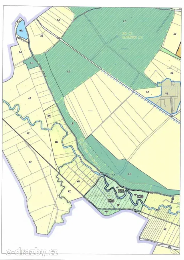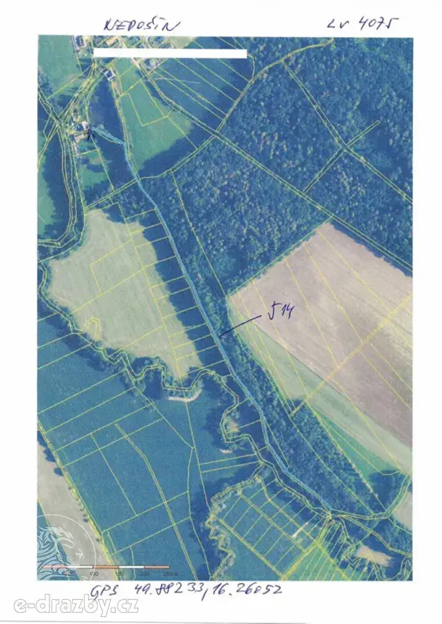 Předmětem dražby je je pozemek, který se nachází severozápadně od středu obce, v blízkosti domu č.p. 68 v Nedošíně.
