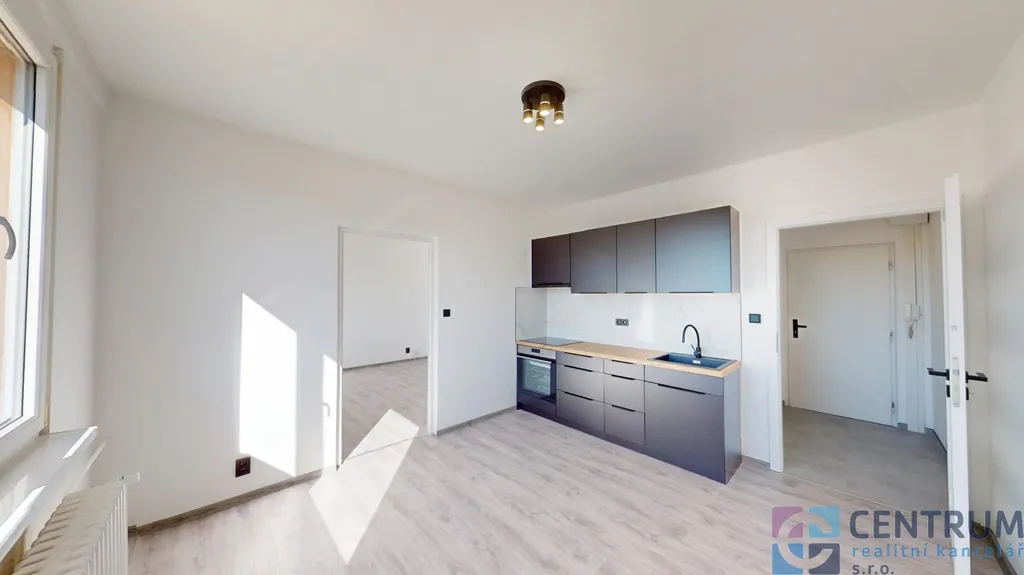 Nabízíme k pronájmu nově zrekonstruovaný byt o dispozici 1+1, který se nachází v 8. nadzemním podlaží revitalizovaného bytového domu s výtahem. Byt je po kompletní rekonstrukci a je připraven k okamžitému nastěhování. Dispozičně se skládá z jedné samostatné místnosti, kterou lze využít jako ložnici, pracovnu, a druhé místnosti s kuchyní, která může sloužit jako obývací pokoj s kuchyňským koutem. Součástí bytu je dále předsíň, koupelna s toaletou. Byt se nachází ve vyšším patře, což zajišťuje příjemný výhled a dostatek světla.