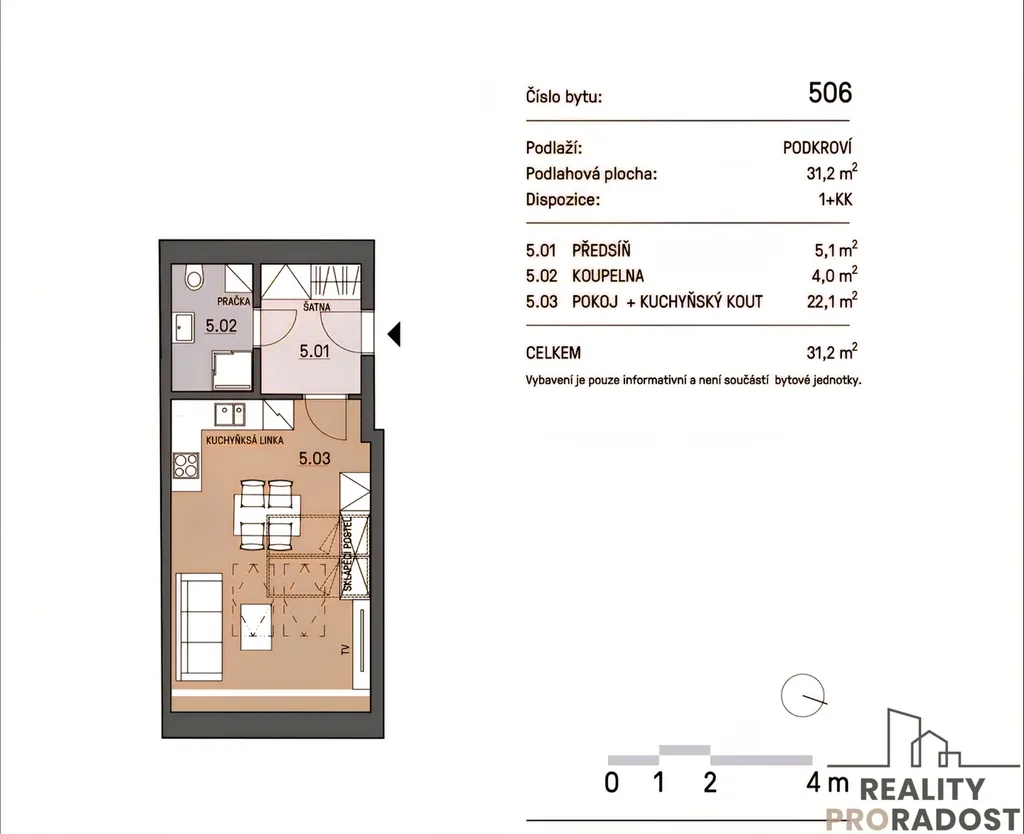 Hledáte pěkný byt 1+kk, o velikosti 31,2m2, v blízkosti centra, jste pár, studenti nebo pracující, tak je tenhle byt přímo pro Vás. Byt je vhodný až pro 2 osoby, zvířátka vítány. Byt je vybaven lednicí, varnou deskou, elektrickou troubou, myčkou a klimatizací. Byt je k nastěhování od 10.04.2026. Veškerá občanská vybavenost v okolí, do centra chůzí cca 5 minut, zastávka MHD cca 2 minuty. Prohlídky jsou možné po domluvě.