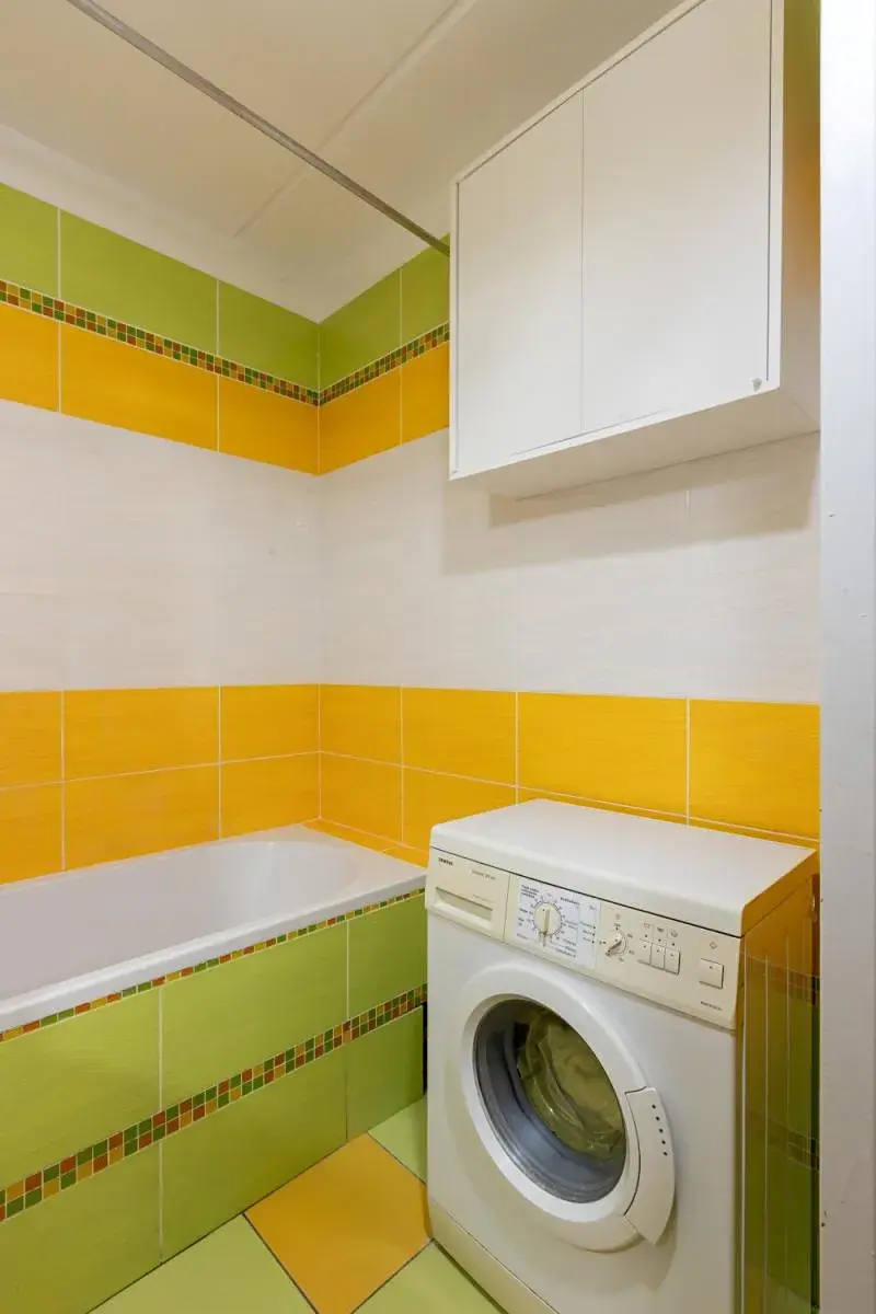 sporákem, troubou a digestoří. V koupelně najdeme vanu, umyvadlo a