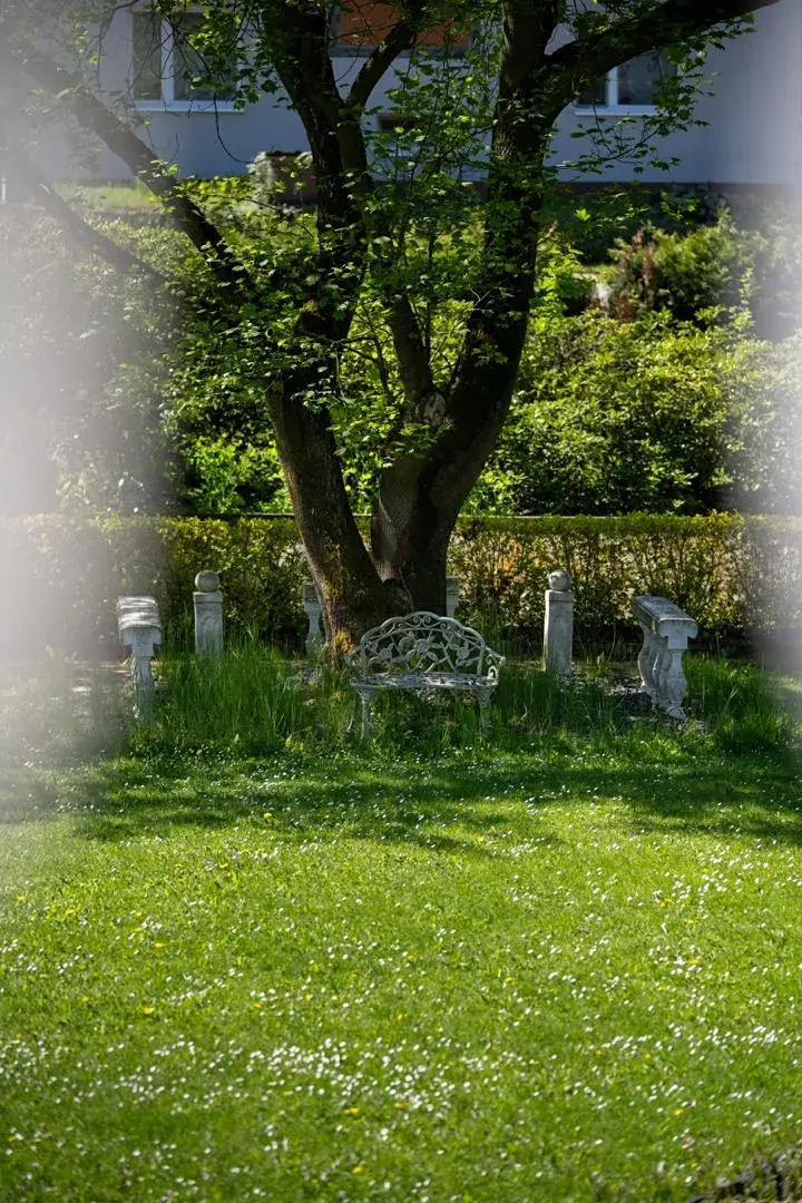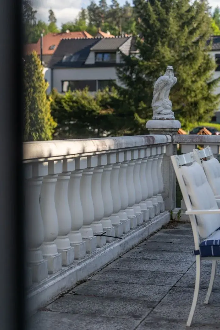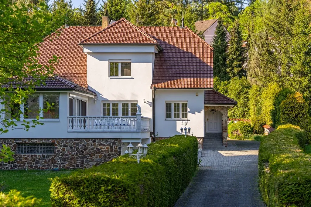 Pozemek 1 775 m² nabízí maximální soukromí. Zahradou protéká regulovaný potok, vzrostlé stromy a příjezdová cesta s ambientním osvětlením vytvářejí jedinečnou atmosféru. Garáž pro 2 vozy + parkování celkem až pro 8 automobilů.