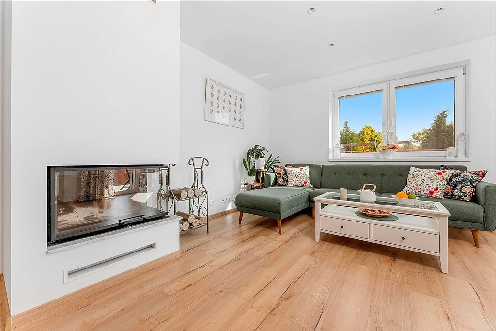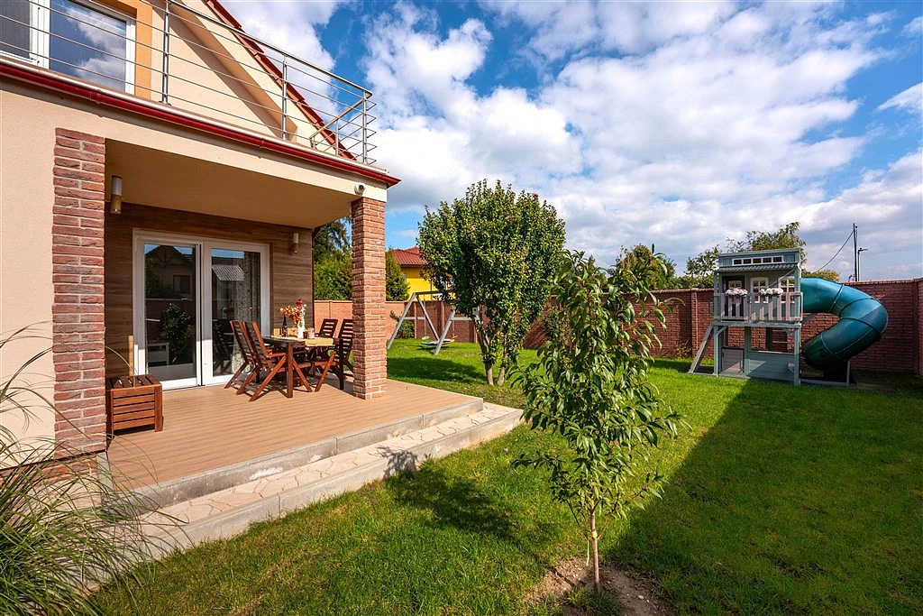 ___ Dvoupodlažní rohový dům se zahradou stojí na pozemku 399 m² ve vyhledávané rezidenční oblasti nad městem. Původní dům z roku 1970 byl odstraněn a na jeho základech vystavěná novostavba byla dokončena v roce 2024. Dům je chráněn kamerovým systémem, je napojen na veřejný vodovod i kanalizaci, elektřina 220 i 380 V. Podlahové topení ve všech místnostech, spotřeba elektřiny (i díky krbu... ) pouhých 3.000 Kč/měsíc.