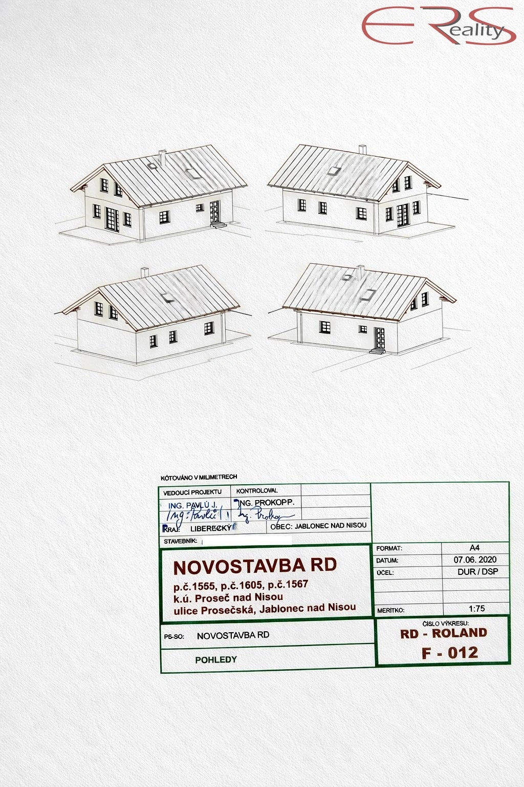 Součástí prodeje je stavební povolení + projekt na rodinný dům: zastavěná plocha 54 m² + obytné podkroví