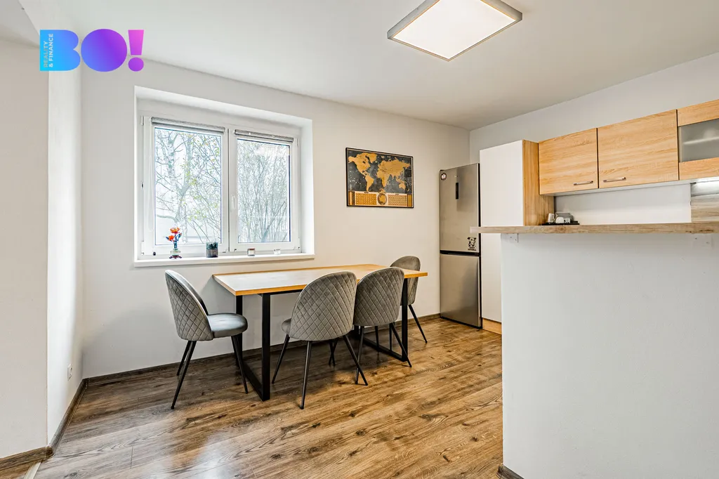 Byt je situován v 1. patře cihlového domu, který prošel kompletní revitalizací. Samotná bytová jednotka byla kompletně rekonstruována přibližně před šesti lety, takže nabízí příjemné a moderní bydlení bez nutnosti dalších větších investic.