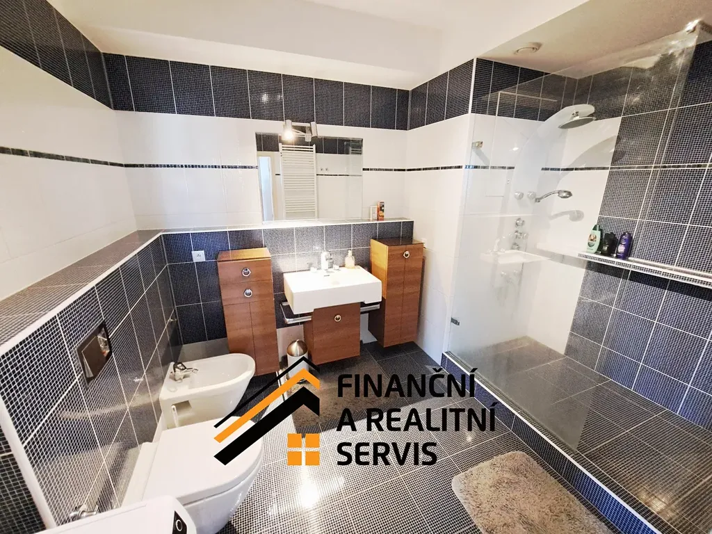 Byt umožňuje nastěhování s minimem starostí díky své všestranné vybavenosti jak nábytkem, tak spotřebiči, a to od kuchyně po koupelnu. Centrem je obývací pokoj s velkou pohovkou, jídelním stolem a dalším vybavením včetně televizoru. Z obývacího pokoje se vstupuje na balkon s dechberoucím výhledem na okolní Prahu, který oceníte zejména večer. Na obývací část navazuje vybavený kuchyňský kout a taktéž vybavená ložnice s úložnými prostory. Druhá vybavená ložnice je přístupná z chodby. Zájem vzbudí až luxusně prostorná koupelna s nadstandardním sprchovým koutem. Samozřejmostí je sklepní kóje a parkovací stání v podzemních garážích. Dopravu v domě zajišťuje několik velmi rychlých výtahů včetně nákladního.