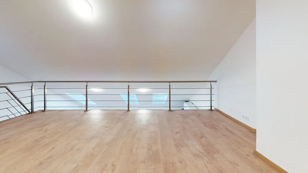 Byt je řešen jako mezonet se dvěma patry, což poskytuje příjemné a praktické rozdělení prostoru. Dispozice zahrnuje obývací pokoj s kuchyňským koutem a další samostatné pokoje, koupelnu s toaletou a vstupní chodbu.