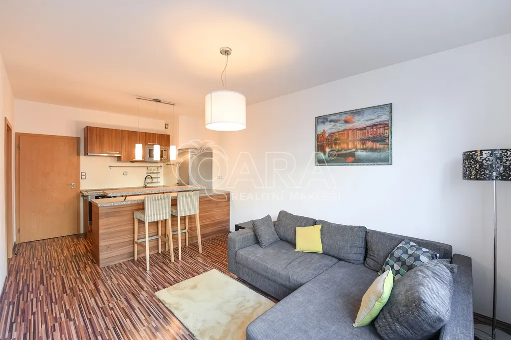 Byt sestává z předsíně (5,3 m2), obývacího pokoje s kuchyňským koutem (20,5 m2), ložnice (12,4 m2), koupelny s vanou a toaletou (5 m2), praktické komory (3,4 m2) a lodžie (3,6 m2). Z obývacího pokoje je pak vstup na lodžii. Kuchyně je plně vybavena vestavnými spotřebiči – myčkou, horkovzdušnou troubou, digestoří, varnou deskou a volně stojící lednicí. V ložnici instalována velkorysá vestavná skříň s dostatkem úložného prostoru. Obývací pokoj zařízen gaučem a konferenčním stolkem. Vytápění zajišťují radiátory s termostatickými hlavicemi.