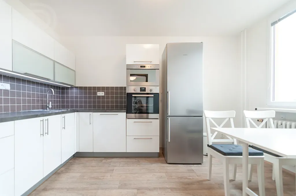 K dispozici jsou zejména: myčka, lednice, vestavná trouba, mikrovlnná trouba a plynový sporák. Dále