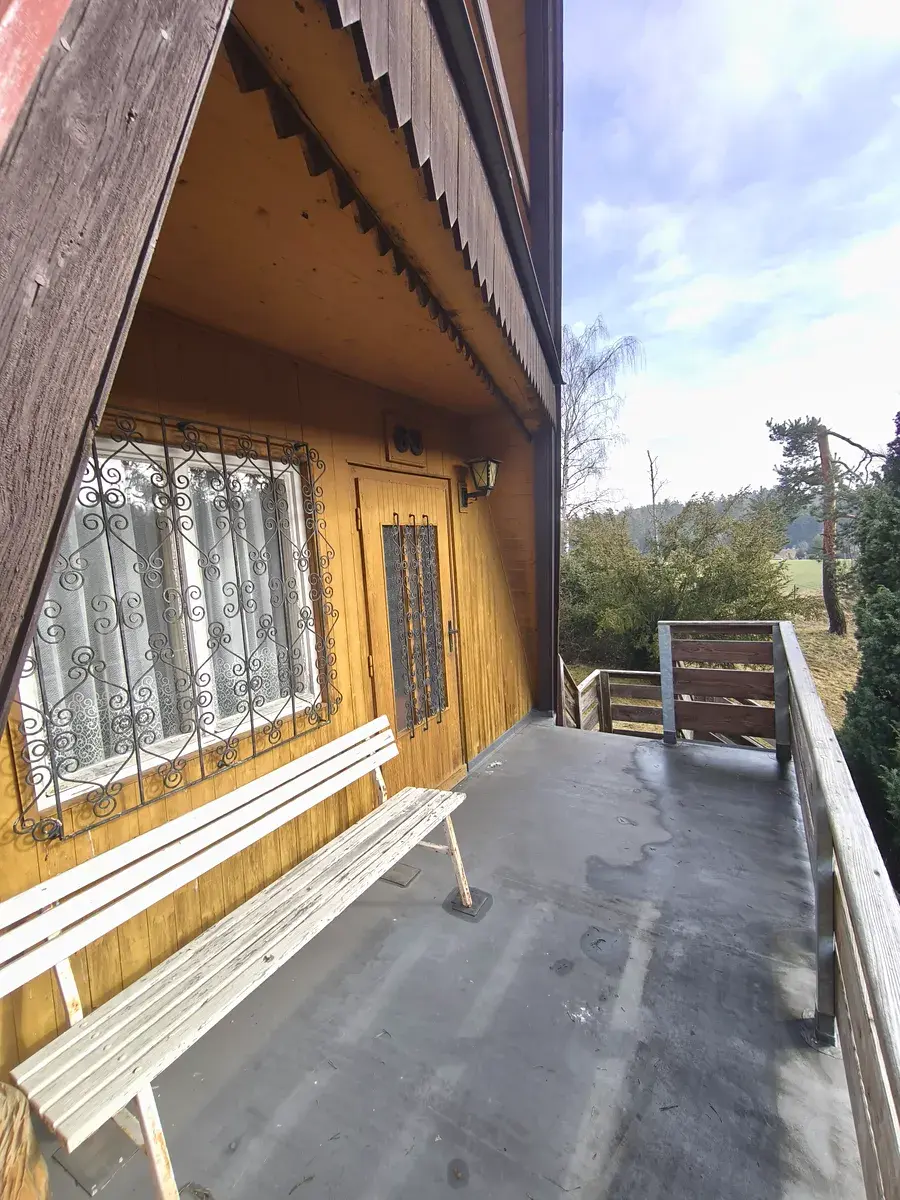 Prodej samostatně stojící podsklepené chaty na pozemku o CP 1227 m2, v rekreační části města Velké Meziříčí – Nesměř. Chata se nachází nedaleko řeky Oslavy s výbornou dostupností do Velkého Meziříčí, centrum města je vzdáleno 2 km. Dálnice D1 je vzdálena 3 km. Nemovitost o užitné ploše 50 m2 v osobním vlastnictví stojí na vlastním pozemku o zastavěné ploše 25 m2. Objekt je možně dle územního plánu zvětšit a upravit podle vašich potřeb. Do obytné části chaty (16,5 m2) vstupujete přes terasu (6,5 m2), zde se nachází kuchyňka, úložné prostory, stůl, pohovka a krbová kamna, schody do patra, kde se nachází ložnice s balkonem (12,5 m2). Na chatě proběhla přibližně před 5 lety rekonstrukce zahrnující mimo jiné: vyvložkování komínu, oprava terasy, instalace pochozí folie na terasu a balkon, nový rozvod elektřiny (220 /380 V), kontrola střechy, oprava části nosné konstrukce v suterénu chaty. Voda z vlastního vrtu o hloubce 28 m je přivedena do sklepa chaty a je přípraven prostup pro zavedení vody do obytné části. Ve suterénu chaty je sklad – technické zázemí (13 m2) a koupelna s umyvadlem (1,6 m). Na pozemku se nachází suché WC. Veškerou občanskou vybavenost a služby naleznete ve Velkém meziříčí. Pro více informací kontaktujte makléře.