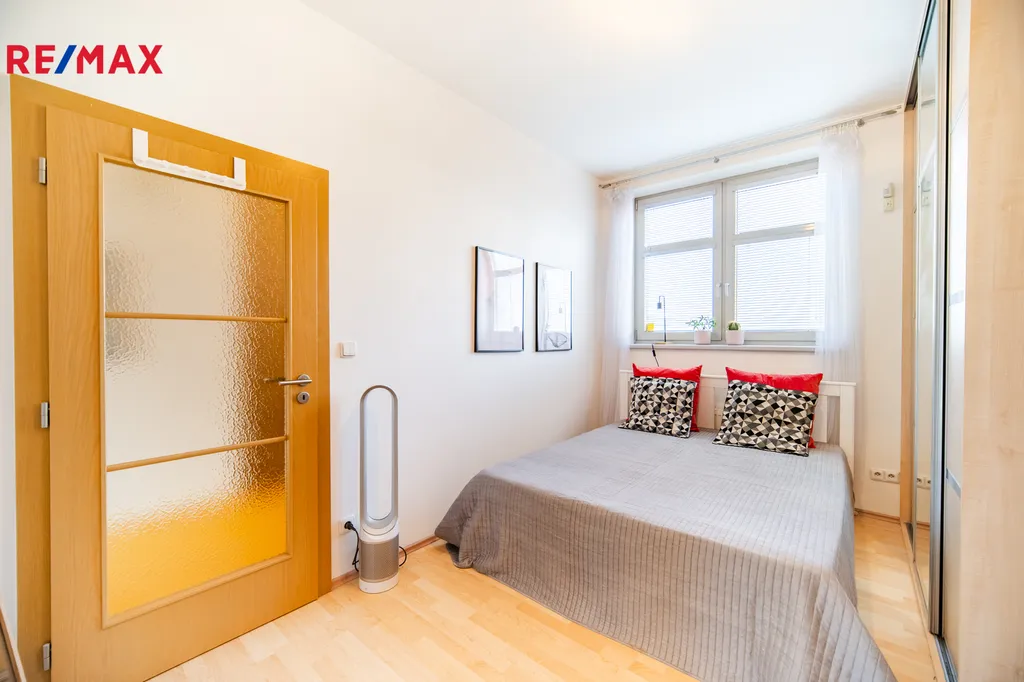Samostatná ložnice je orientována do klidného vnitrobloku, což zajišťuje příjemné a ničím nerušené spaní.