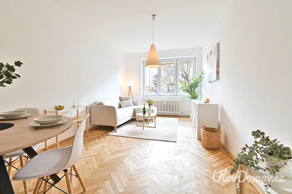 Dispozice bytu nabízí dva samostatné pokoje, samostatnou kuchyň, oddělenou koupelnu, WC a předsíň. Velkou výhodou jsou neprůchozí pokoje, které zajišťují dostatek soukromí a zároveň umožňují v případě investičního záměru pronájem bytu jako dvě samostatné místnosti. Kuchyně je situovaná do ulice Patočkova a pokoje do ulice Břevnovská.