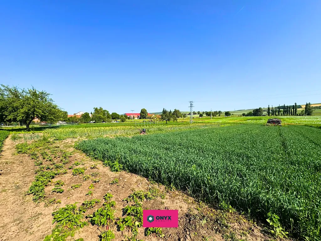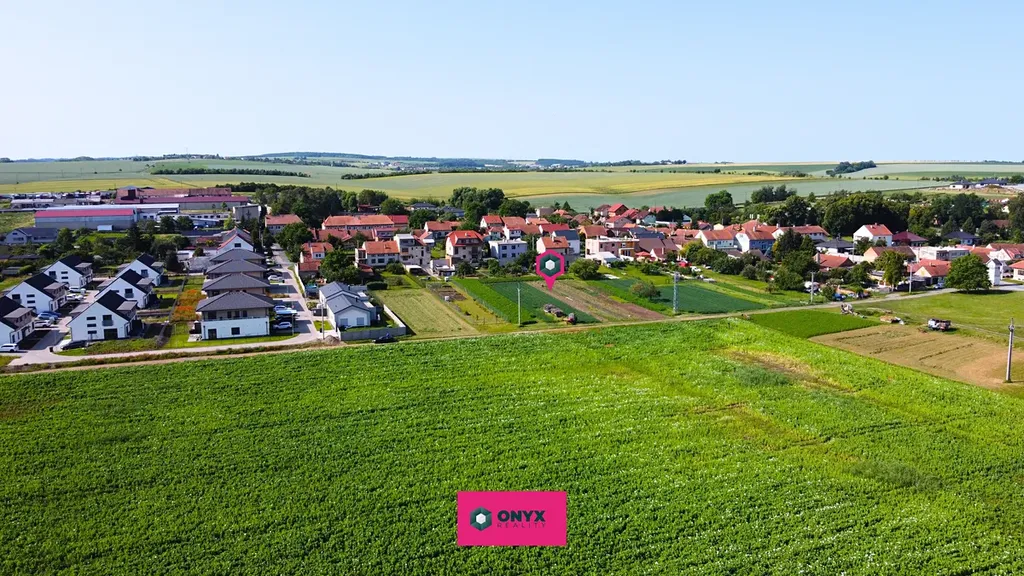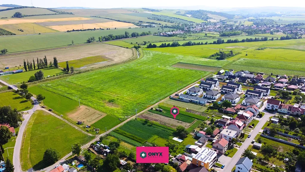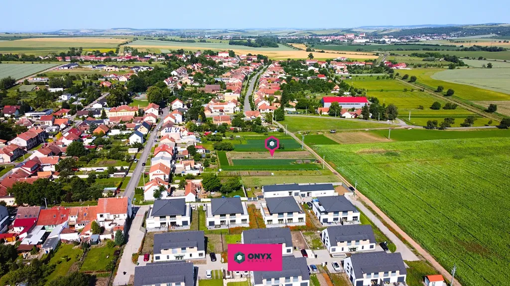 Nabízíme rovinatý stavební pozemek o výměře 1 062 m² v klidné obci Hodějice, 3 minuty od Slavkova u Brna a cca 25 minut od centra Brna.