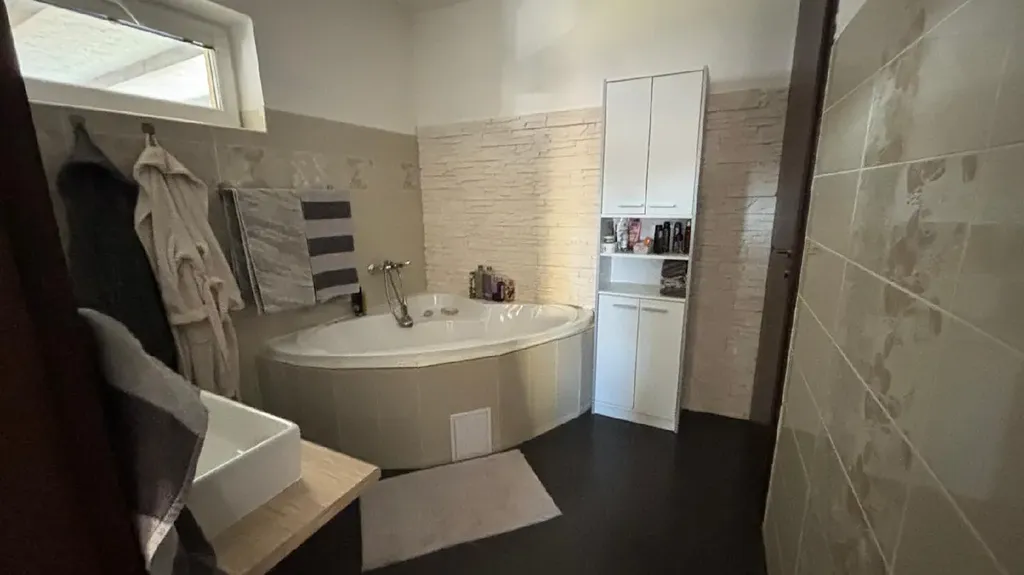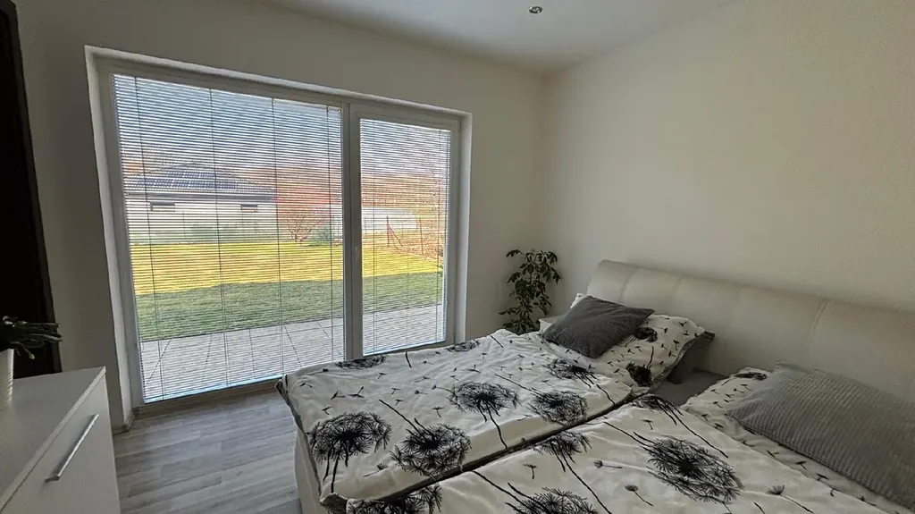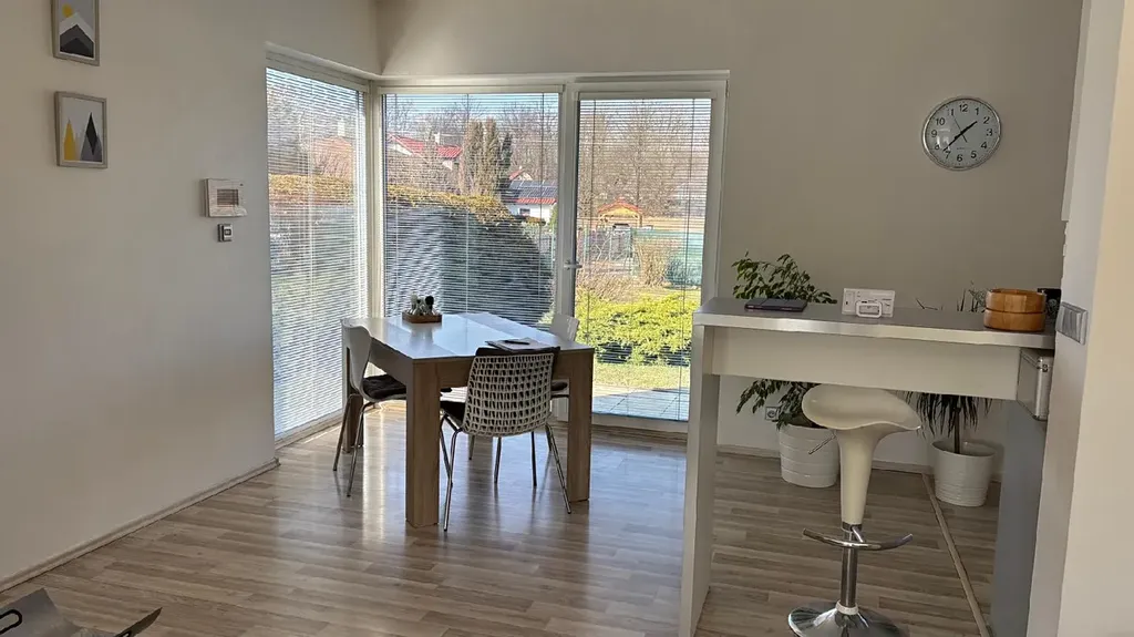 Exklusivně nabízíme k prodeji rodinný dům v Oprechticích (obec Paskov, okr. Frýdek-Místek). Jedná se o patrový nepodsklepený rodinný dům (zděný z tvárnic Porotherm 25 CB), stáří domu 13 let. Dispozice přízemí domu je 3+kk+šatna+koupelna s vanou a s WC (WC je v samostatné místnosti s dveřmi za koupelnou) a technická místnost. V patře domu je jeden pokoj o výměře 17,4 m2 se vstupem na prostornou terasu (75 m2) a koupelna se sprchovým koutem a s WC (2 m2). Z kuchyně a z jednoho z pokojů v přízemí je vstup na zahradu. V celém domě jsou jednotné plovoucí podlahy a podlahové topení. V obývacím pokoji jsou navíc krbová kamna na dřevo a zabudovaný lihový krb. Celý dům svou dispozicí, prosklením a dekorem podlah působí velmi vzdušně a světle. V domě jsou atypické dveře o výšce 2,20 m, které celému interiéru dodávají na zajímavosti. Dům je ve velmi dobrém stavu. Celková výměra pozemků je 1031 m2, z toho zahrada má výměru 897 m2 a zastavěná plocha domu je 134 m2. Pozemek je celý oplocený a vjezd je přes bránu s automatickým otevíráním. Parkování je možné pod přístřeškem pro 2 auta a za vjezdovou bránou další 2 parkovací stání.