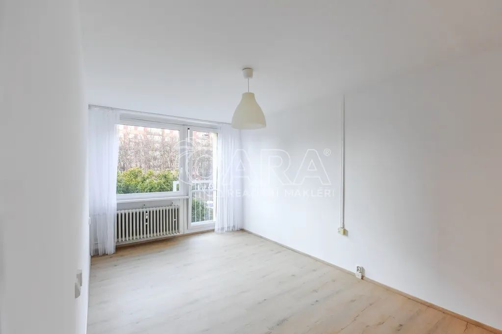 Byt je po právě dokončené rekonstrukci, je orientován na západ do klidné ulice.