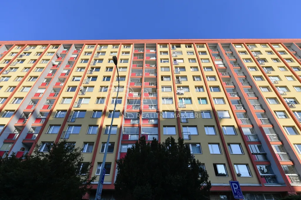 Exkluzivní nabídka pronájmu bytu 2+kk (43m2) v druhém nadzemním podlaží panelového domu s výtahem na adrese Famfulíkova 10, Praha 8 - Kobylisy.