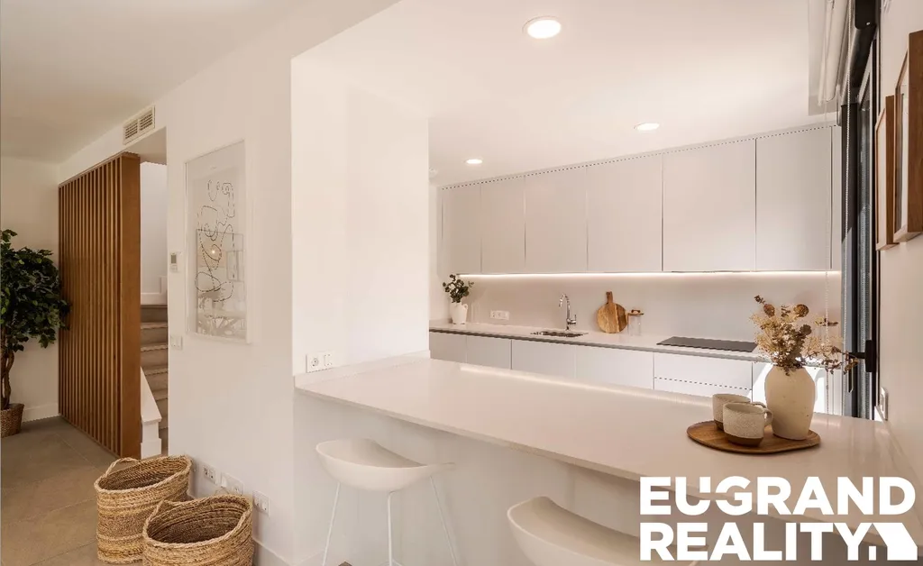 Součástí nemovitosti je soukromý bazén, zahrada a garáž. Dům je vybaven klimatizací, bezpečnostními elektrickými roletami a prodává se kompletně zařízený.