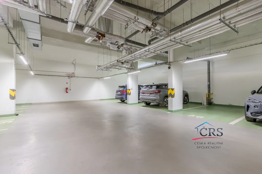 Garážové stání v přízemí domu. V domě k dispozici kočárkárna s kolárnou.