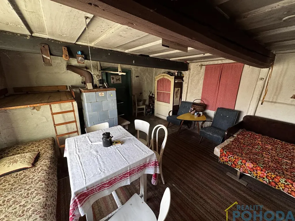 Malá chaloupka, kde se čas zastavil a vzpomínky visí ve vzduchu. Domek do L se zápražím, malým dvorkem a stodolou šeptají příběhy minulých generací. V obytné místnosti u kachlových kamen stojí lavička, jako by někdo právě vstal, a pohovka připomíná poobědní odpočinek, který tu kdysi patřil ke každodennímu životu. Tato chaloupka je výzvou pro ty, kdo mají představivost každý kout tu šeptá svůj příběh a čeká, až mu rekonstrukcí vdechnete nový život.