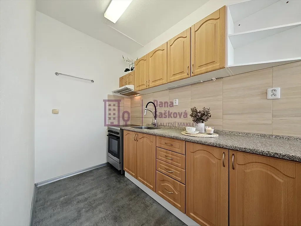 Dispozice 3+1 nabízí vstupní chodbu, koupelnu s toaletou a vanou, kuchyni s jídelním koutem, obývací pokoj a dvě ložnice.