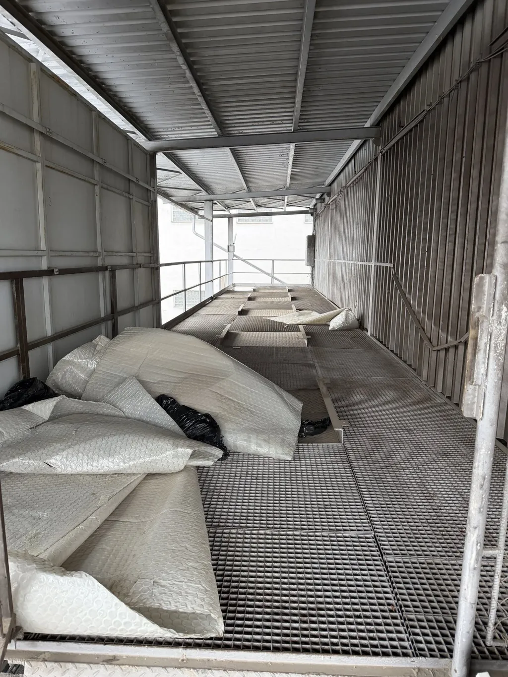 Hala nevytápěná, připojeno pouze na el., k dispozici el. vytápěná admin. buňka uvnitř haly, viz. foto.
