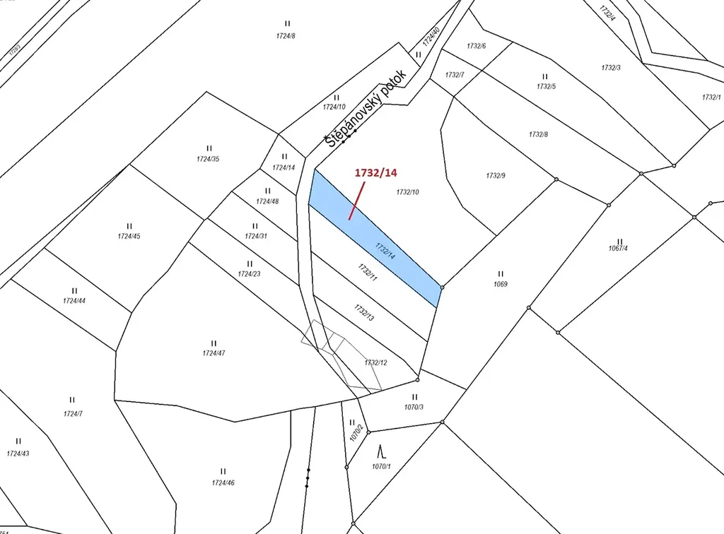 Ostatní plocha o výměře 417 m2, parcelní číslo 1732/14, podíl 1/1, katastrální území Soutice, obec Soutice, obec s rozšířenou působností Vlašim, okres Benešov, Středočeský kraj.