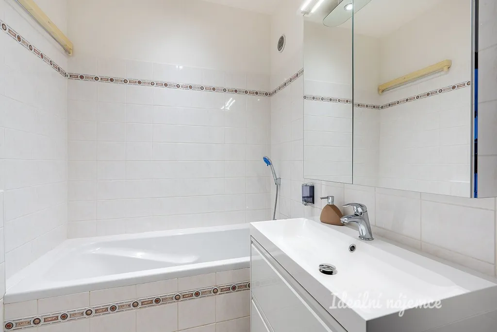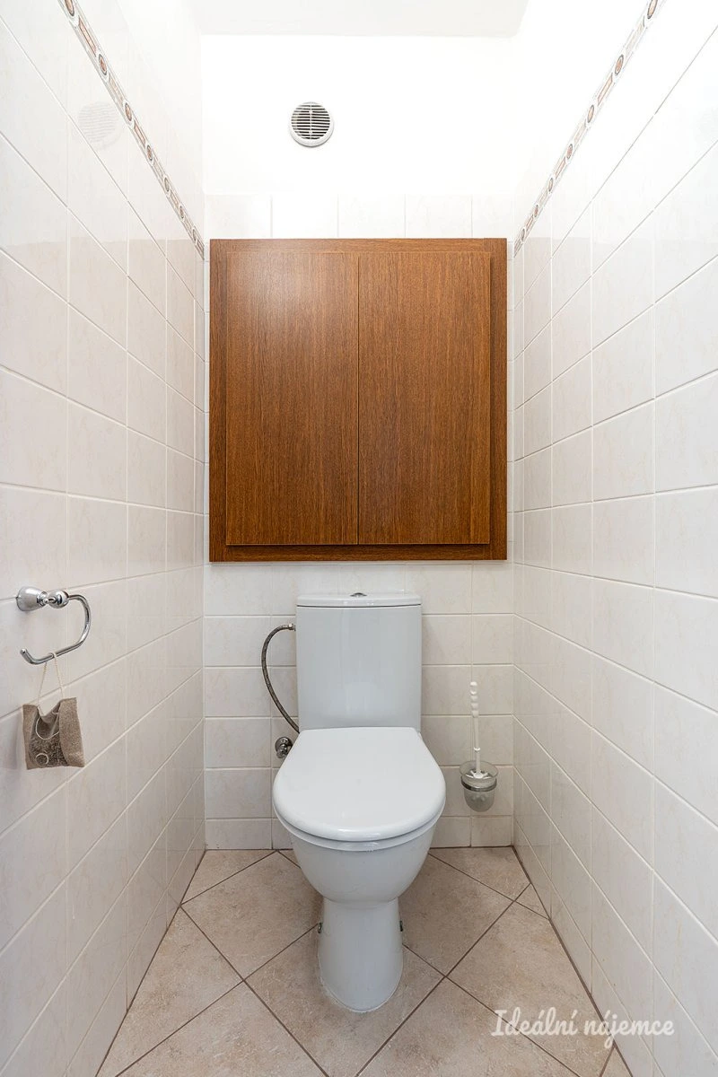 V koupelně se nachází vana, umyvadlo se zrcadlem a koupelnová skříňka. Toaleta je umístěna samostatně. V předsíni je k dispozici vestavěná skříň a botník.
