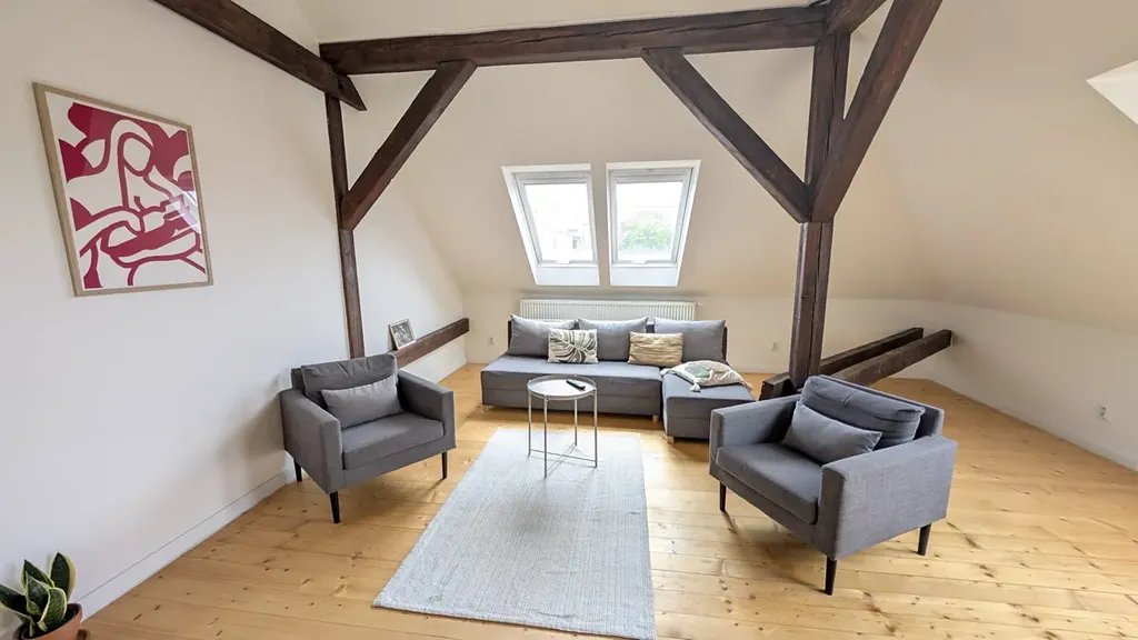 Byt prošel kompletní rekonstrukcí v roce 2023 a nabízí moderní, funkční a příjemné bydlení. Vytápění i ohřev teplé vody jsou řešeny elektrickým kotlem. Dispozičně je řešen jako dvoupodlažní – spodní část tvoří prostorný otevřený obytný prostor s kuchyní a jídelnou, koupelna s vanou a samostatná ložnice. V horním patře se nacházejí dvě ložnice a koupelna se sprchovým koutem.