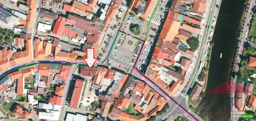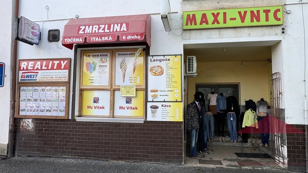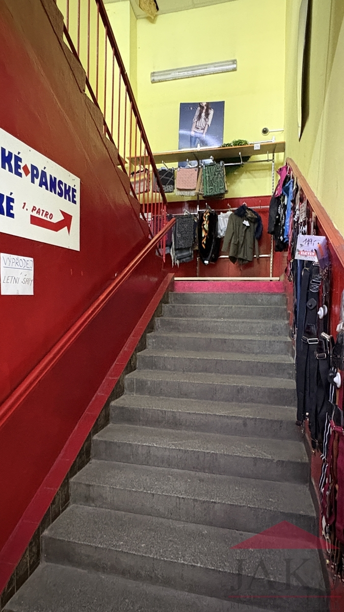 Popis: 1.NP (cca 245 m2): vstupní chodba 10 m2 přímo z náměstí; rychlé občerstvení (cca 50 m2): výdejní prostor, výrobní prostor, sklad a soc. zázemí, původní kotelna; zadní nákladová rampa s chladícím boxem a nákladním výtahem; obchod s oblečením v 1.NP (cca 185 m2): hlavní prodejní prostor 170 m2 s výlohami, sklad 15 m2; schodiště do 2.NP (druhá část obchodu cca 230 m2): hlavní prodejní prostor 215 m2, sklad 15 m2; 3.NP - půda (cca 200 m2; přístup pouze výtahem): sklad cca 150 m2 a kancelář se sociálkou cca 50 m2; díky vysoké půdě vč. vikýřů lze přestavět na další prodejní prostor či apartmány.