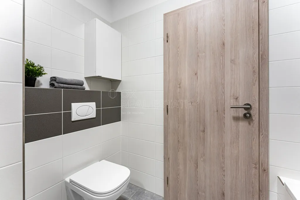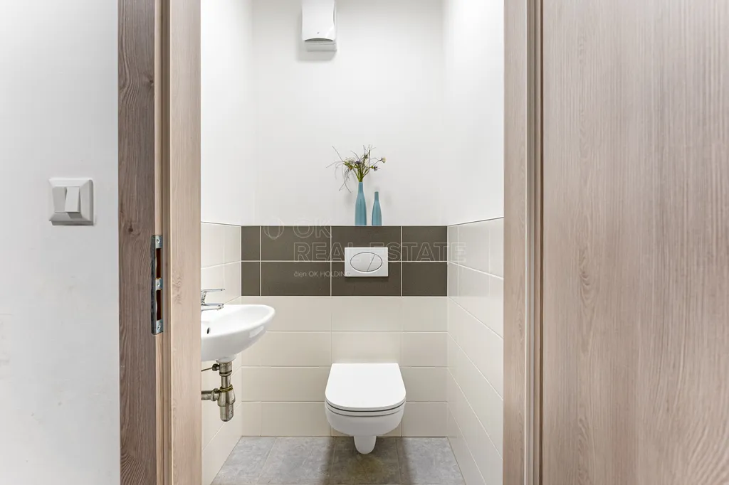 Hned po vstupu vás přivítá centrální chodba, která přirozeně propojuje celý byt. Žádné hluché rohy, žádná zbytečná místa, dispozice je praktická a funkční. Technická místnost nenápadně řeší každodenní provoz domácnosti. Dvě toalety přinášejí komfort, který ocení rodina i návštěvy.