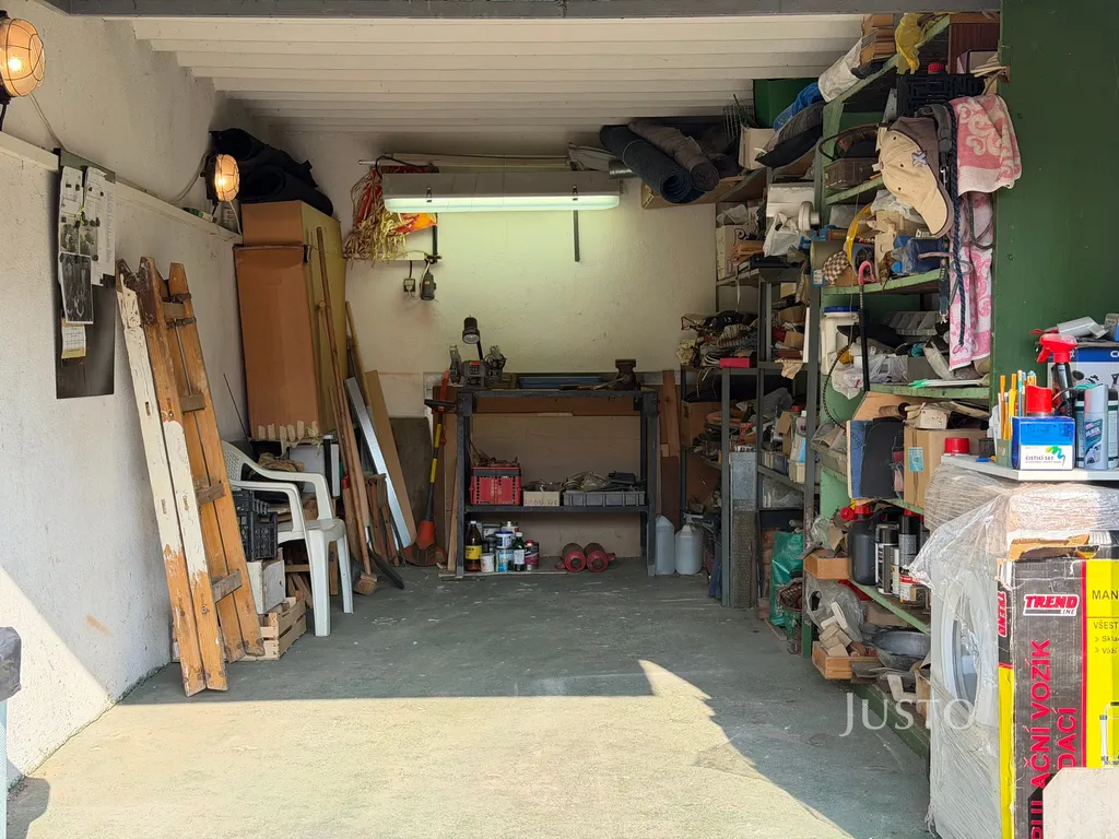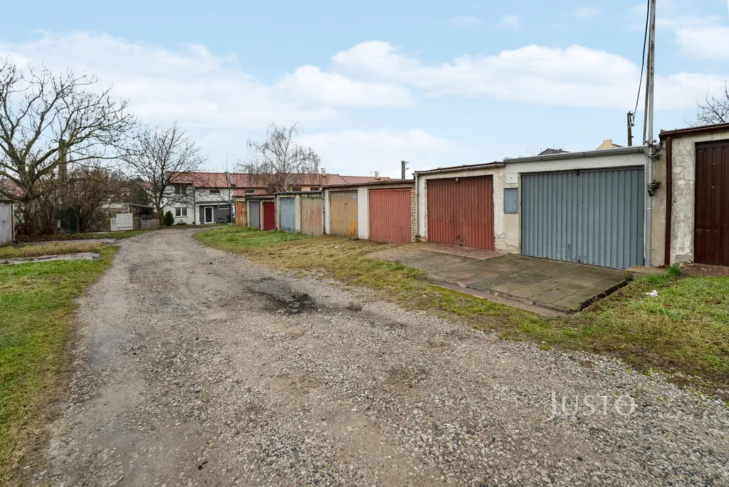 Garáž je součástí řadové cihlové zástavby a díky zavedené třífázové elektřině 380 V je ideální především jako menší dílna, prostor pro hobby práci, servis motocyklu, kola nebo jako skladovací prostor.