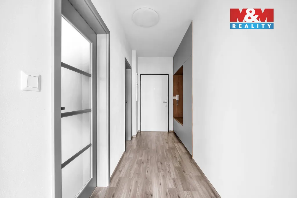 Do vybavení bytu patří žaluzie, vestavěná skříň v chodbě a ložnici, kuchyňská linka s indukční varnou deskou, elektrickou a mikrovlnnou troubou, digestoří, myčkou a lednicí s mrazákem.