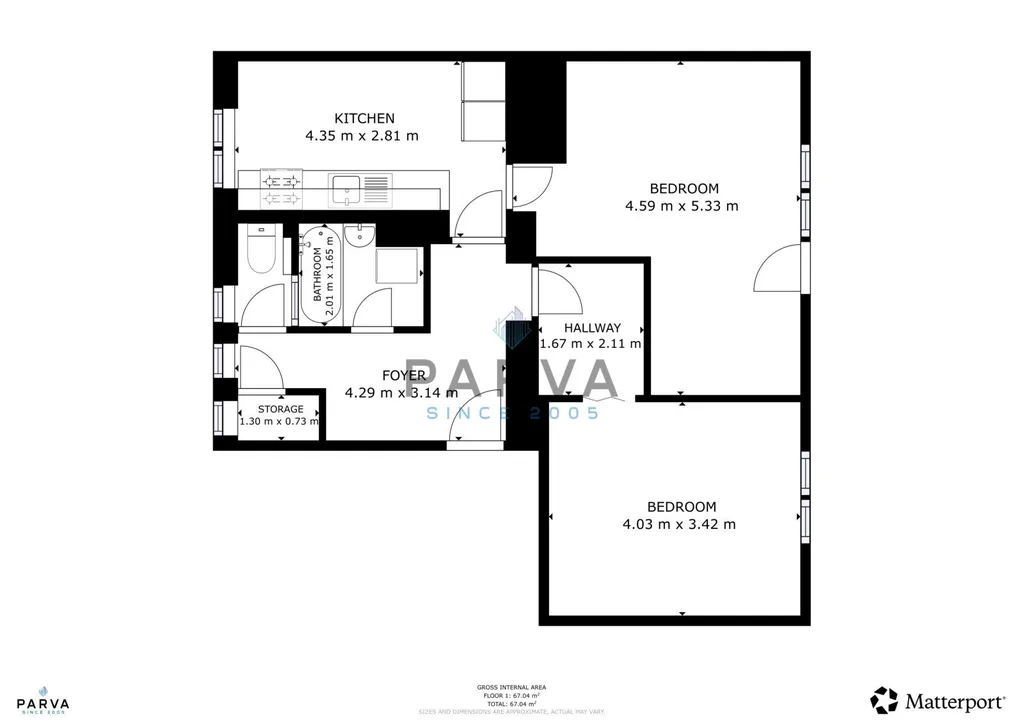 Dispozice bytu je velmi praktická a příjemně řešená. Najdete zde prostornou vstupní chodbu, dva neprůchozí pokoje, samostatnou kuchyni, koupelnu a oddělenou toaletu. Jedna z místností má navíc k dispozici menší předsíňku, která může dobře posloužit například jako šatna nebo úložný prostor.