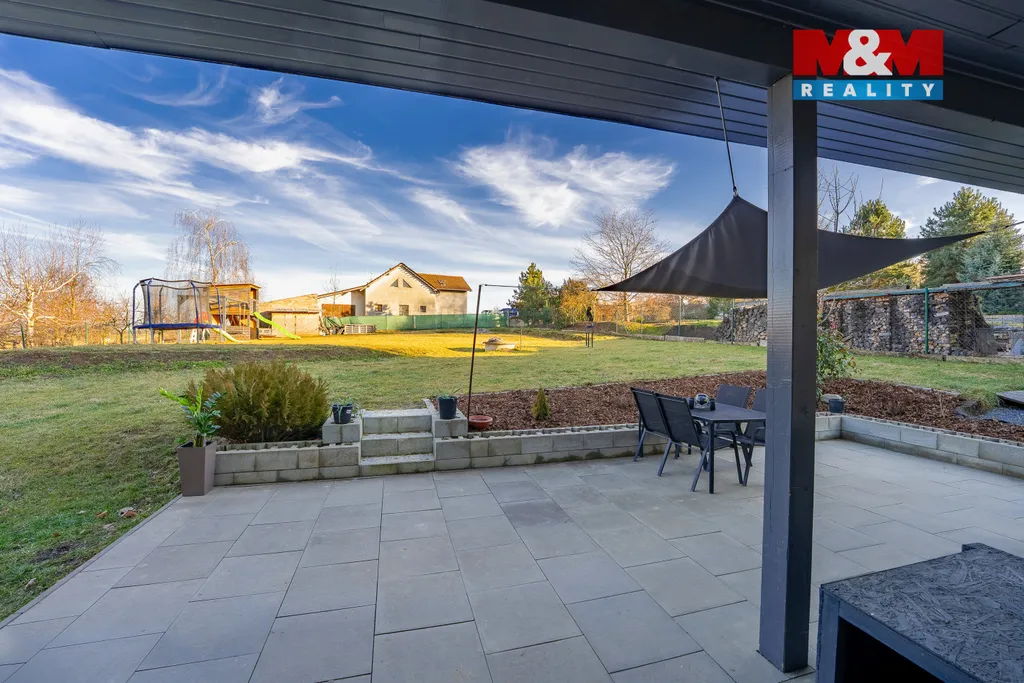 Prodej samostatného rodinného domu 4+kk o užitné ploše 120 m² v klidné části obce Bylany u Kutné Hory. Cihlová novostavba z r. 2018 na pozemku 1 432 m². Zastavěná plocha 148 m2. Přízemní moderní rodinný dům s velkou zahradou. Vytápění zajišťuje tepelné čerpadlo napojené na podlahové topení. V obývacím pokoji a jedné ložnici namontována klimatizace. Prostorný obývací pokoj s kuchyňským koutem a spíží, samostatné WC, úložný prostor na půdě. Z obývacího pokoje vstup na částečně zastřešenou terasu. Ideální volba pro rodinu. Na zahradě připraveny základy pro stavbu garáže. Zahradní domek. Prohlídky a více informací u makléře.