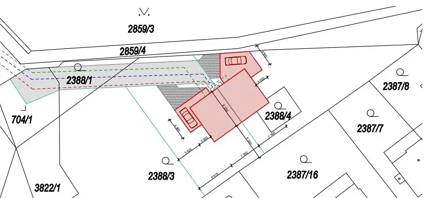 Parkování: V ceně je realizace vlastního carportu a podíl na 3 sdílených stáních pro návštěvy na nové příjezdové cestě.