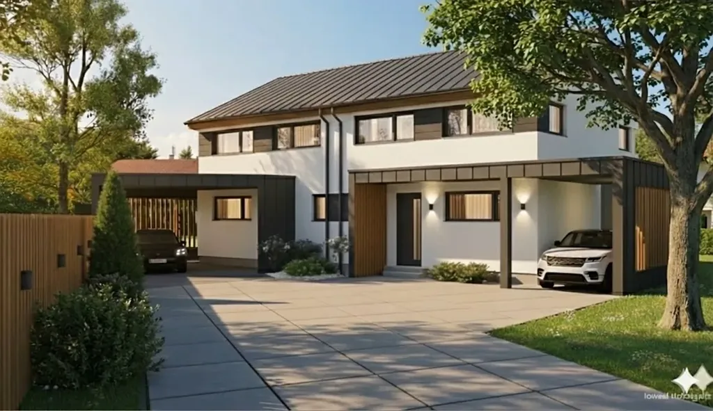 Variabilita: Projekt umožňuje vybudování většího carportu (dvojgarážové stání) nebo domácí dílny.