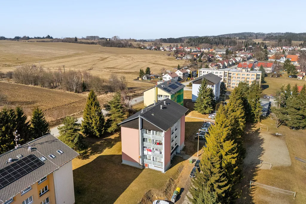 Byt se nachází ve 4. nadzemním podlaží zatepleného a velmi dobře udržovaného domu s výtahem v obci Studená.