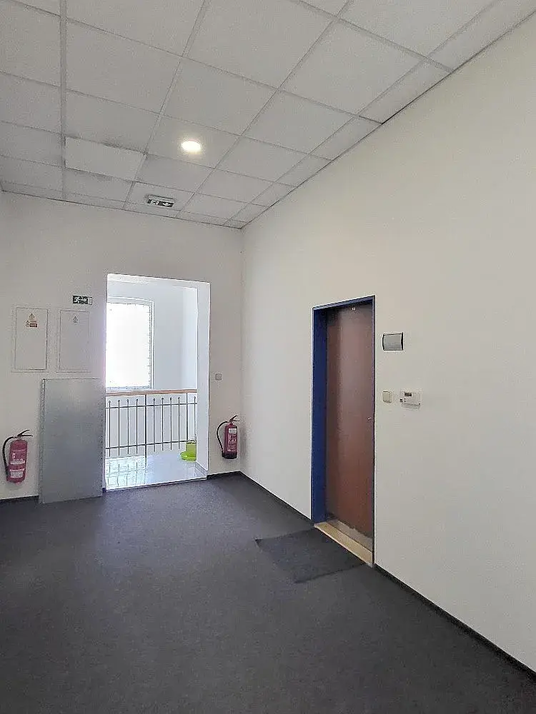 Prostory jsou vhodné pro administrativní činnost, drobný servis, výdejna e-shop apod. Prostory mají vstup přímo z chodby. Jsou vybaveny podhledy s osvětlením, sdílenou kuchyňkou a sdíleným sociálním zázemím na patře. Vytápění je realizováno lokálními plynovými topidly. Kancelář je nově vymalovaná na bílo a na podlaze je nový koberec. Je připravena pro nového nájemce.
