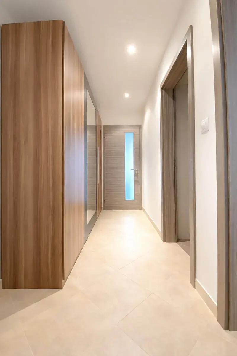 Obývací pokoj propojený s kuchyní tvoří srdce bytu a poskytuje dostatek místa pro jídelní i relaxační část. Ložnice nabízí klidné zázemí pro odpočinek. Výhodou je také komora, která zajišťuje dostatek úložného prostoru.