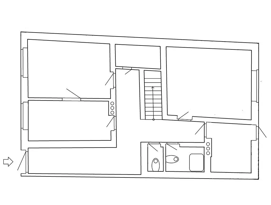 Dispozice je 4+1, z toho jsou dva pokoje v přízemí a dva v patře.