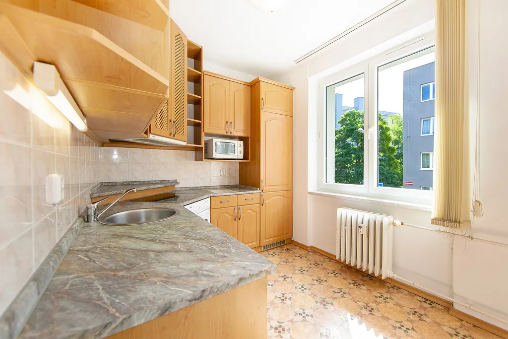 Byt je částečně zařízený dle přiložených fotografií a nabízí komfortní bydlení v lokalitě s výbornou občanskou vybaveností. Kuchyně je vybavena vestavěnou lednicí a mrazákem, dále je v lince zabudovaná pračka, mikrovlnná trouba, sklokeramická varná deska, elektrická trouba a digestoř. V blízkosti se nachází Galerie Slovany, školy, školky, zastávky MHD, obchody i zeleň pro volnočasové aktivity.