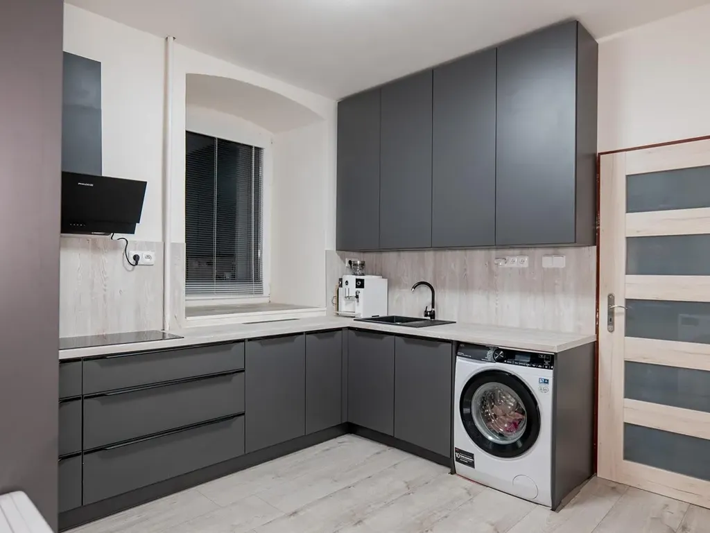 Byt prošel rekonstrukcí a je připraven k okamžitému nastěhování bez dalších investic. Nachází se v přízemí bytového domu, přičemž jeho promyšlená dispozice vytváří příjemně vzdušný a harmonický celek. Dominantou je prostorná kuchyně, samostatná ložnice a další pokoj s variabilním využitím pracovna, dětský pokoj či klidová zóna. Samozřejmostí je koupelna, vstupní chodba s potenciálem pro vestavěné úložné řešení a praktický sklep.