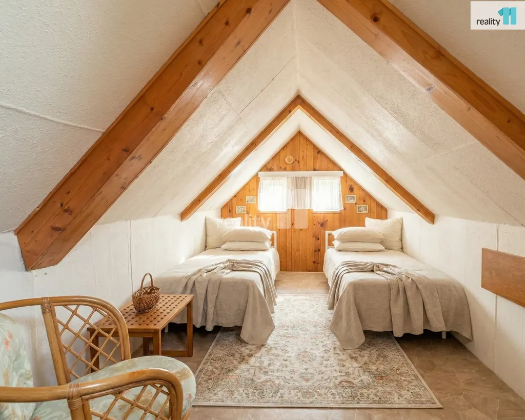 Podkroví: Dva samostatné pokoje, které skvěle poslouží jako ložnice, dětský pokoj či pracovna. K domu přiléhá příjemná terasa, která přímo vybízí k ranní kávě na čerstvém vzduchu nebo večernímu odpočinku s výhledem do zeleně.