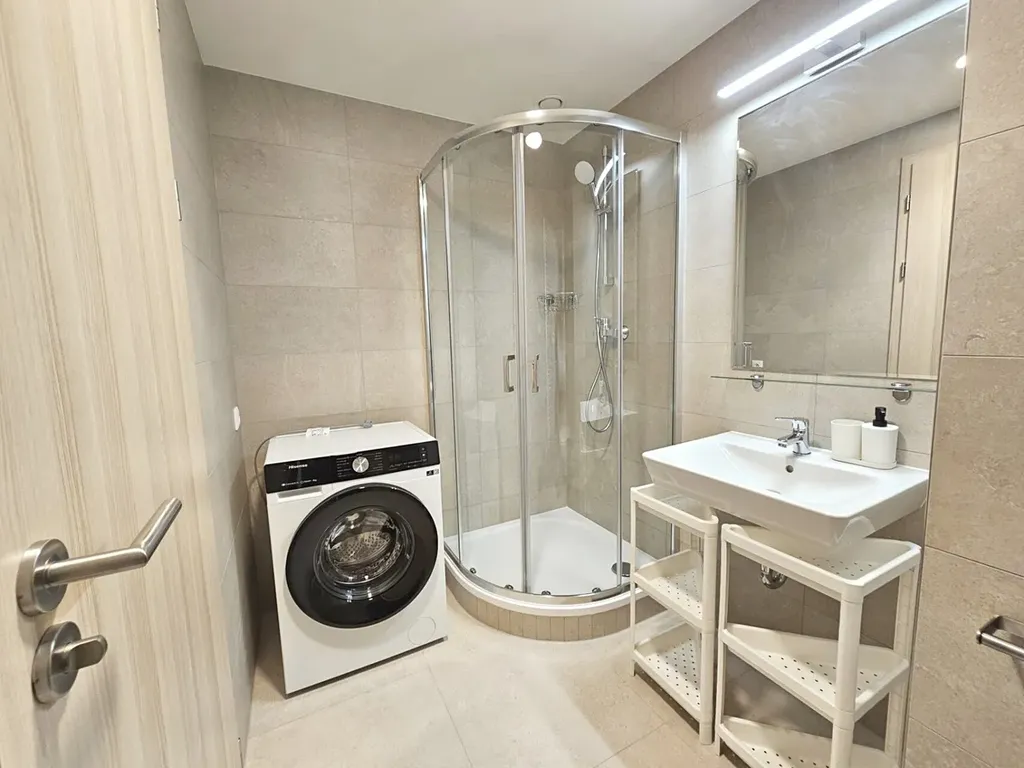 Koupelna se sprchovým koutem a s WC (pračka).