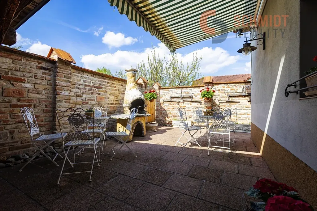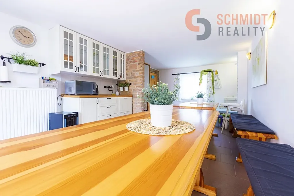 Dům nabízí světlý obývací pokoj s krbem, který plynule navazuje na jídelní část a kuchyni. Dispozice dále zahrnuje tři samostatné ložnice, koupelnu, samostatné WC a technickou místnost. Ze vstupní části domu je přístup do prostorné zimní zahrady s kompletním kuchyňským zázemím, která je ideálním místem pro posezení s rodinou a přáteli po celý rok. Na upravené zahradě se navíc nachází krytý bazén. Parkování je zajištěno krytým stáním vedle domu, které je přístupné přes elektricky ovládanou bránu.