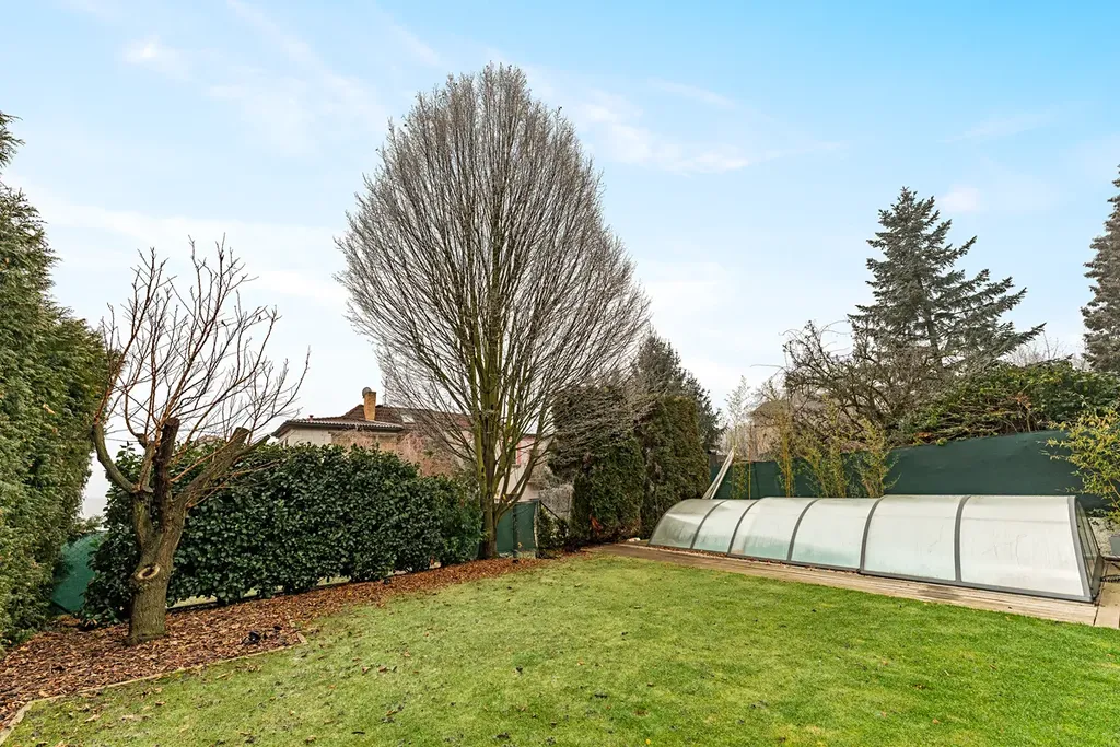Interiér je promyšlen do posledního detailu. Dispozice 6+kk zahrnuje prostorný obývací pokoj s kuchyní a jídelnou, dvě velkorysé ložnice, dvě pracovny, šatnu, dvě koupelny, samostatnou toaletu a vstupní halu. Příjemná je i zimní zahrada s přímým vstupem do soukromé vířivky – místo, kde si můžete dopřát odpočinek v naprostém klidu.
